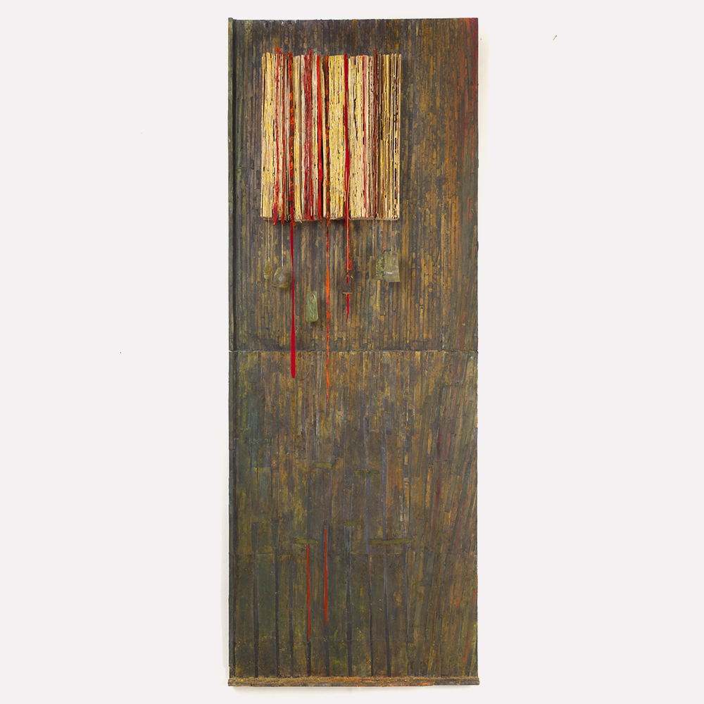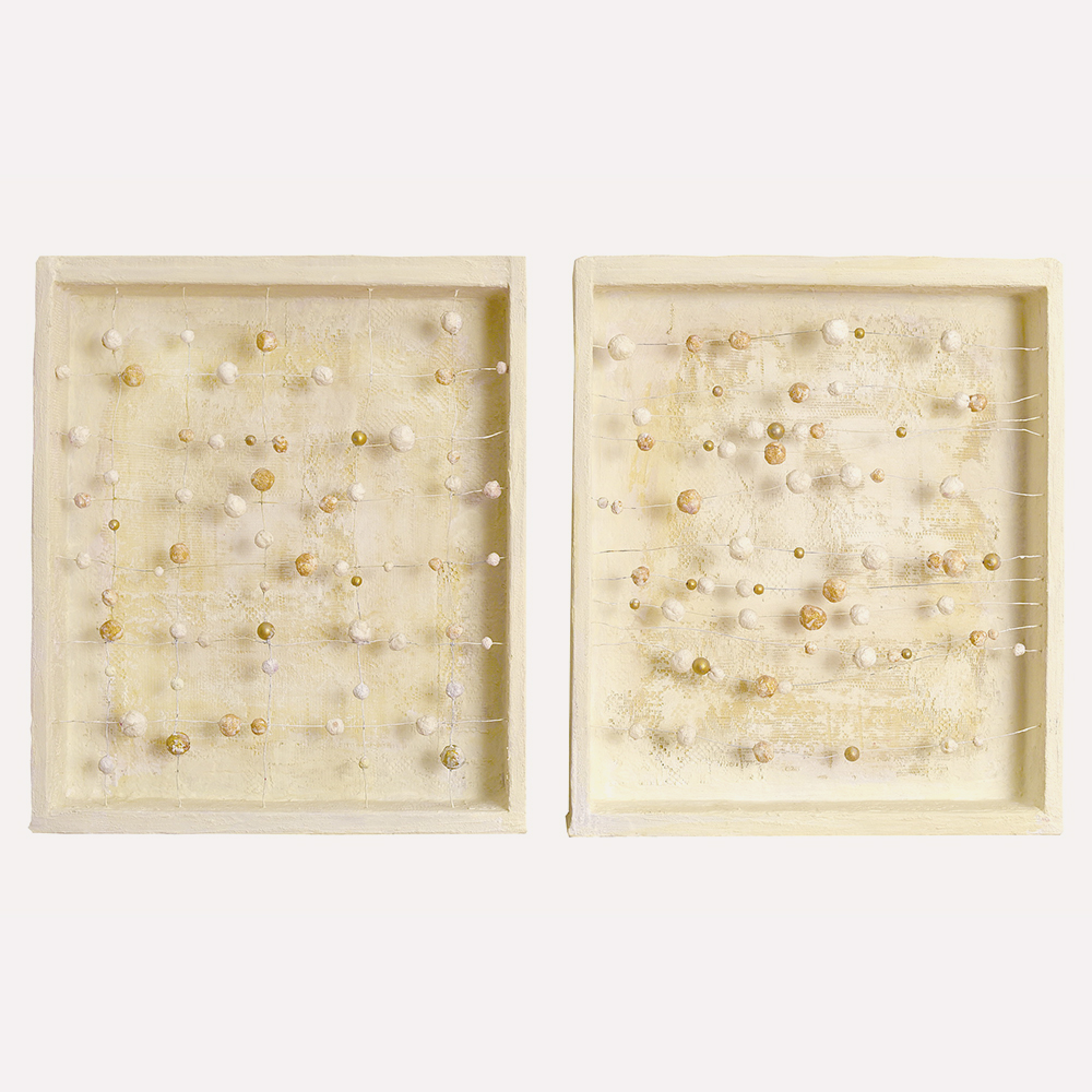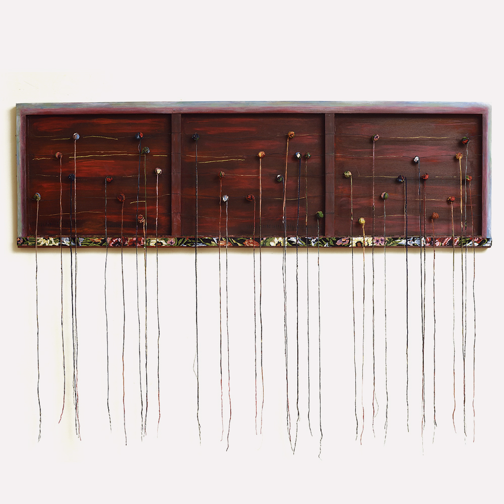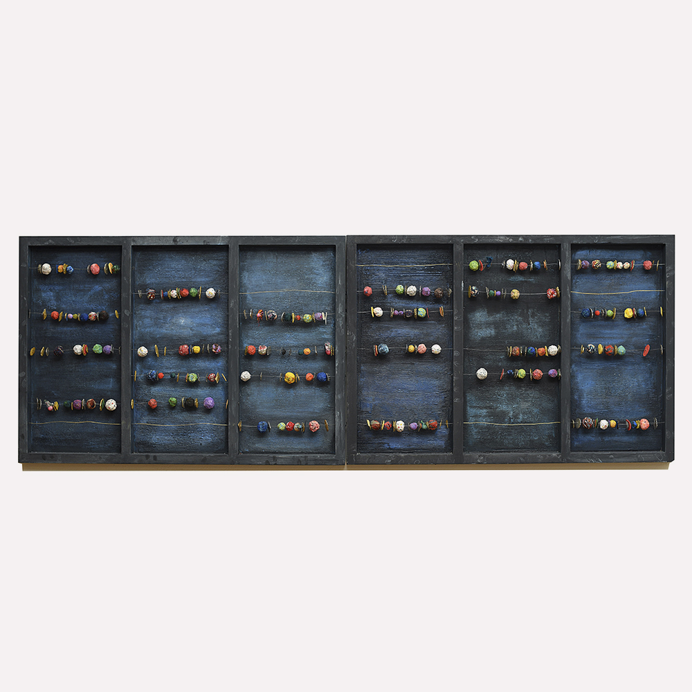Τα έργα είναι φτιαγμένα από ύφασμα, ξύλο, σύρμα, χαρτί, κλωστές και χρώμα.
