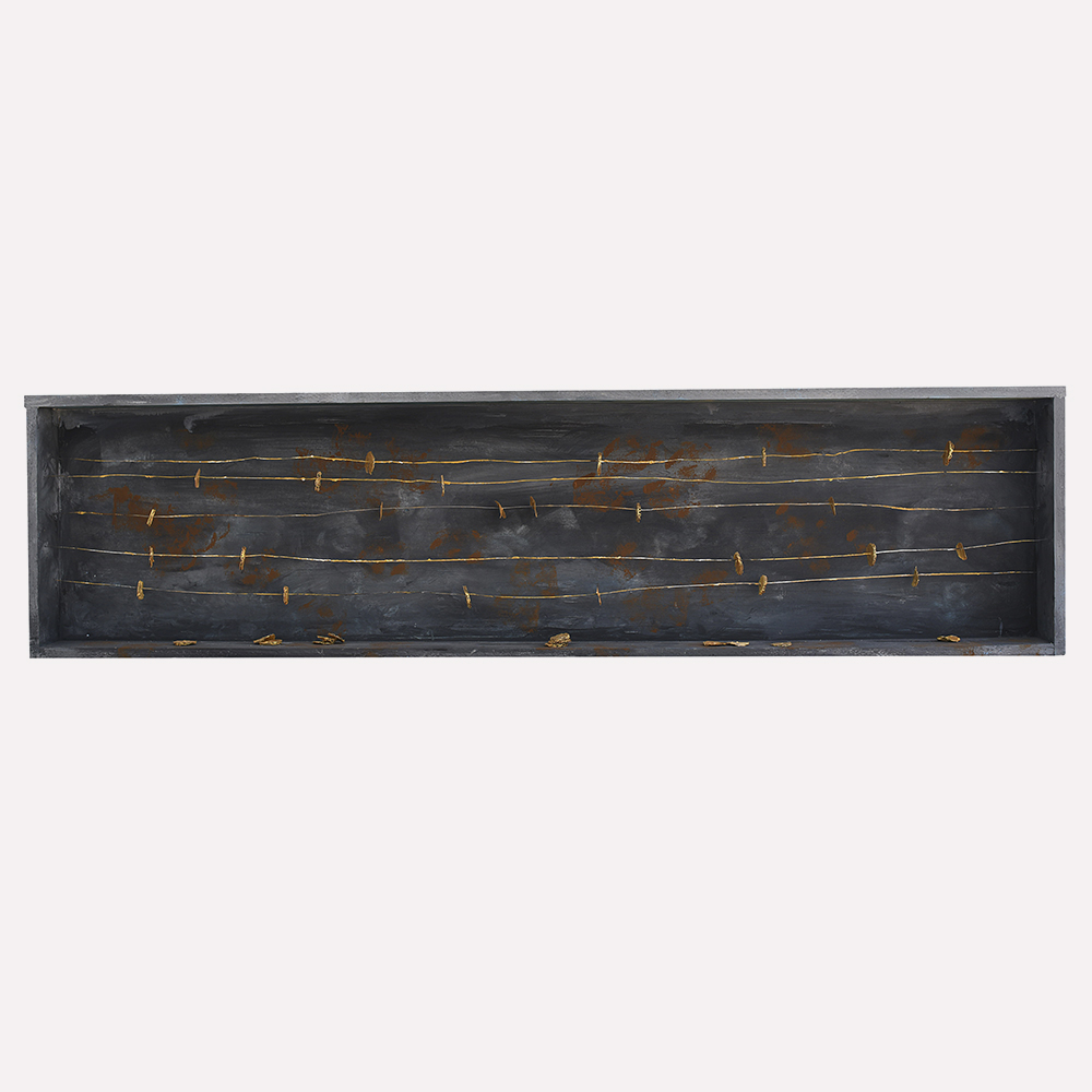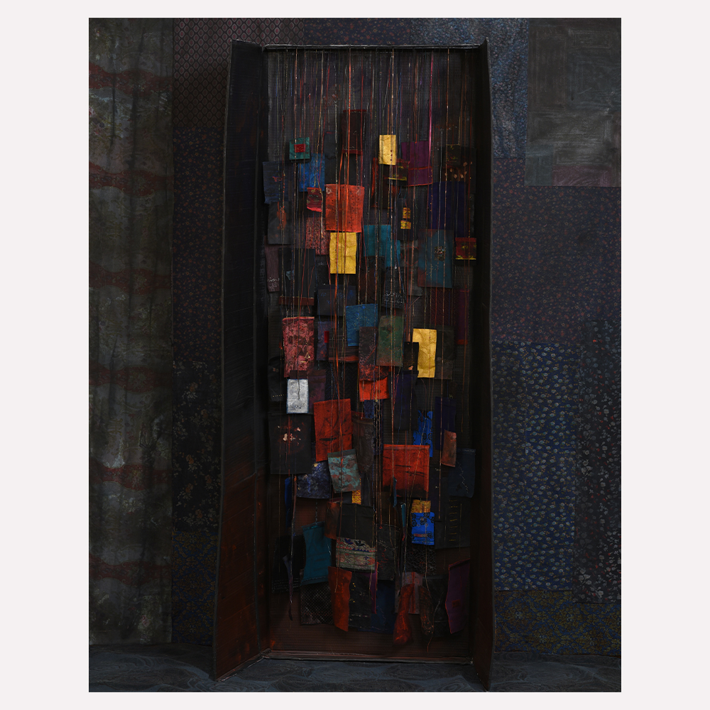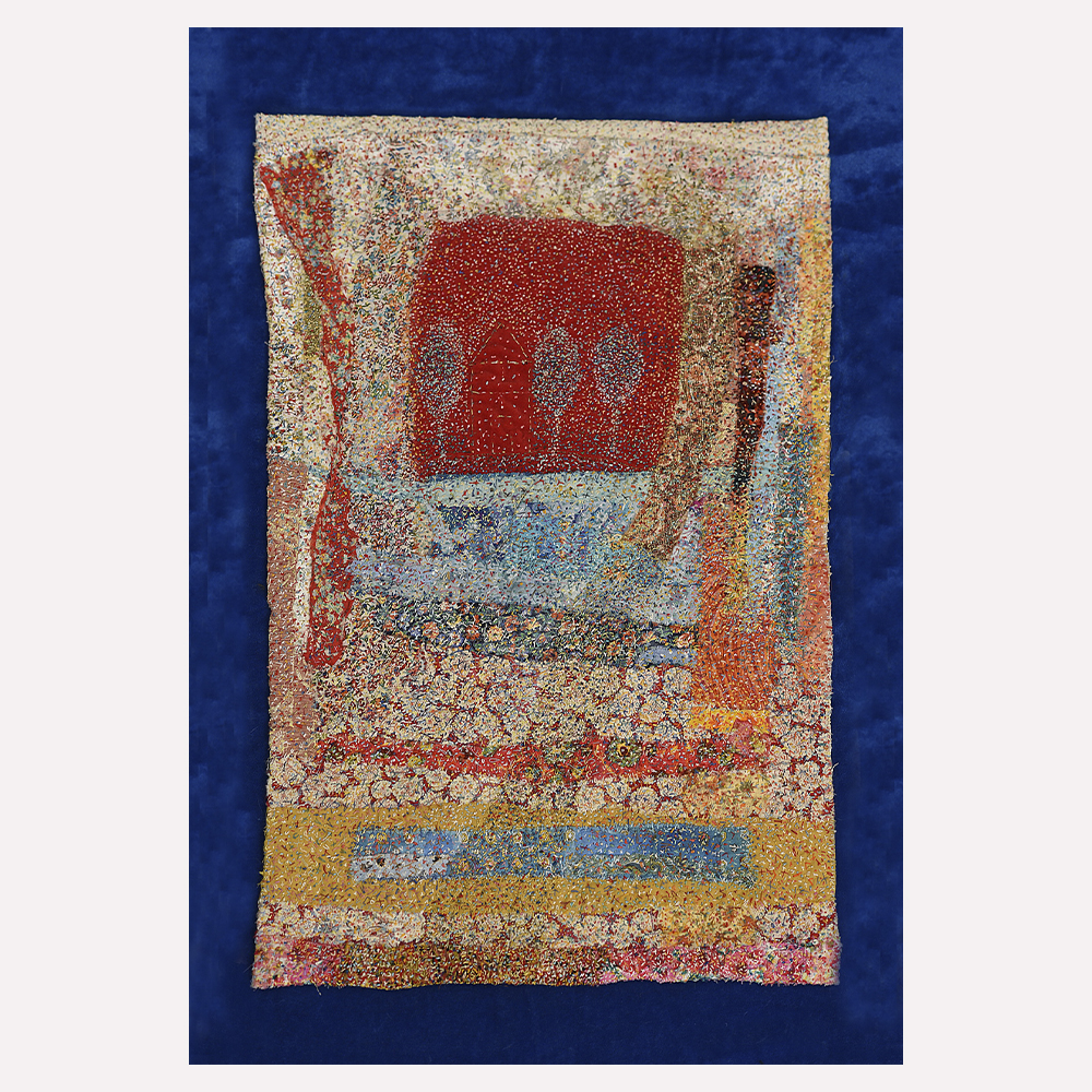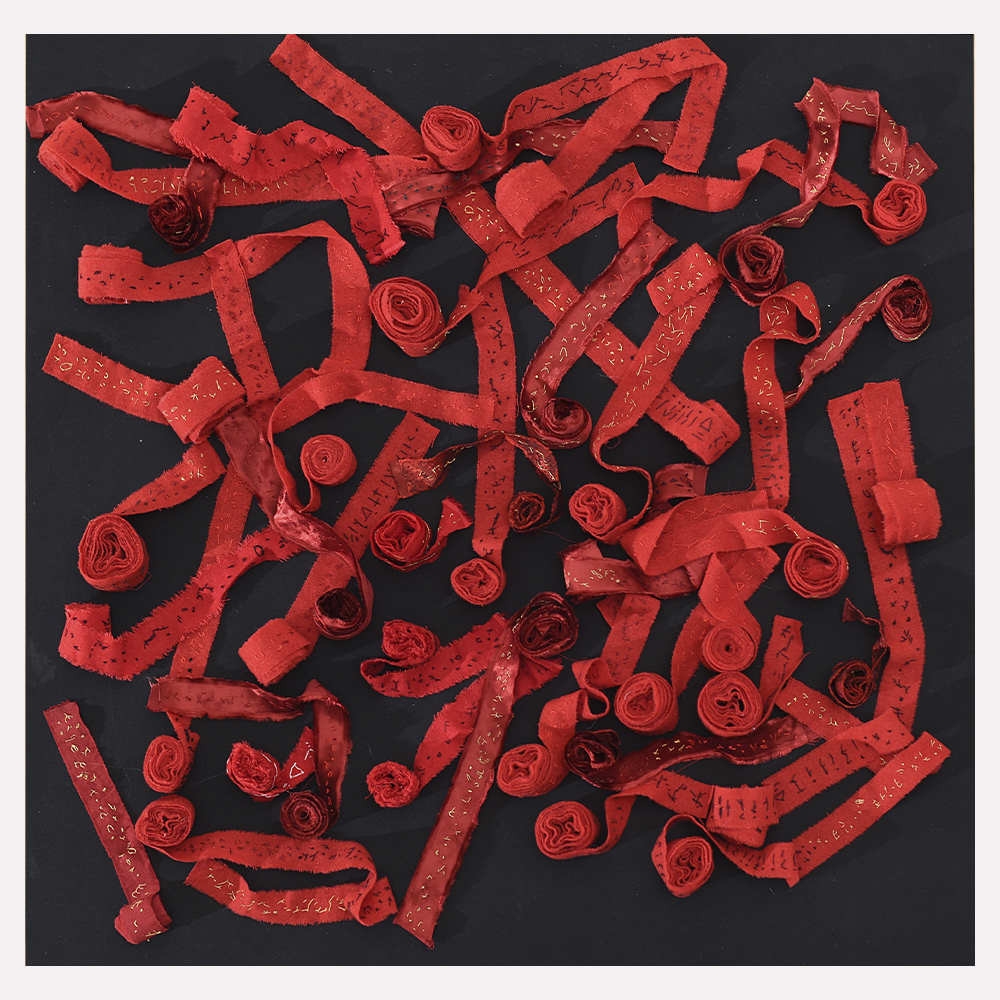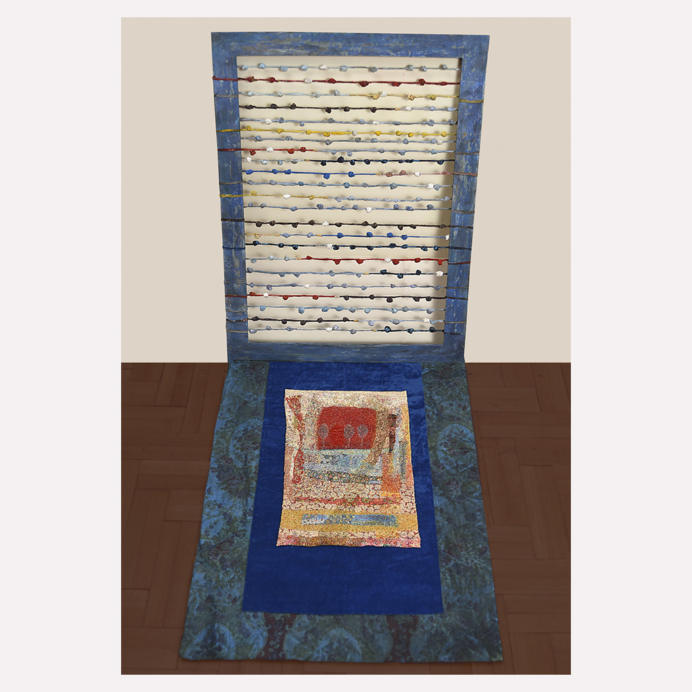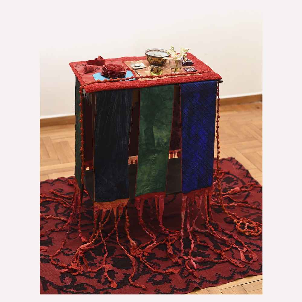Έχει κατασκευασμένες αυλές και φωτισμένους τόπους, κήπους και θάλασσες για απόπλου. Και έχει εγκαταστάσεις με τάματα και χίλιους κόμπους. Ένας εσωτερικός διάλογος με λέξεις που, αντί να ειπωθούν, κεντήθηκαν σε υφασμάτινες λωρίδες.